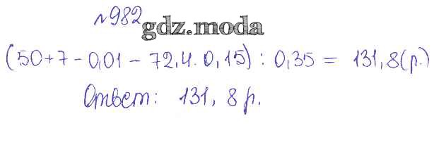 ОТВЕТ на задание № 982 Сборник задач и упражнений по Математике 5 класс Гамбарин