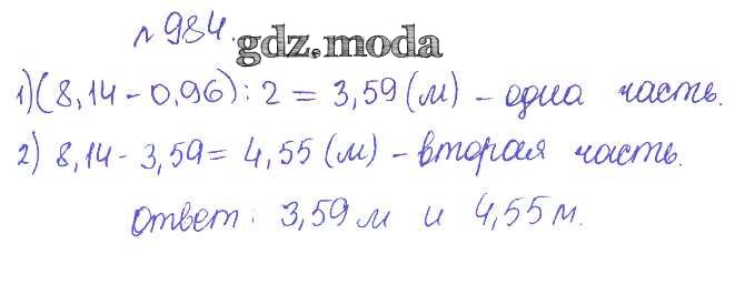 ОТВЕТ на задание № 984 Сборник задач и упражнений по Математике 5 класс Гамбарин