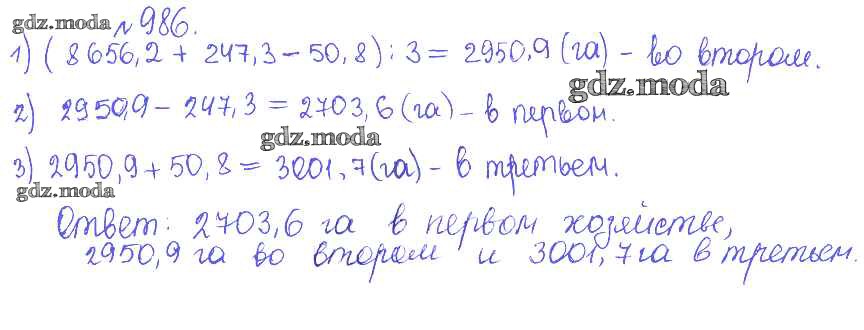 ОТВЕТ на задание № 986 Сборник задач и упражнений по Математике 5 класс Гамбарин