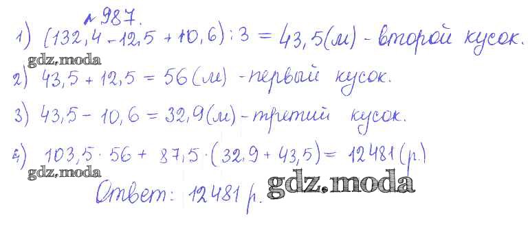 ОТВЕТ на задание № 987 Сборник задач и упражнений по Математике 5 класс Гамбарин