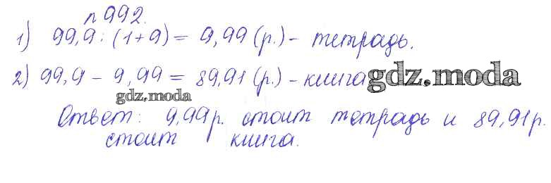 ОТВЕТ на задание № 992 Сборник задач и упражнений по Математике 5 класс Гамбарин