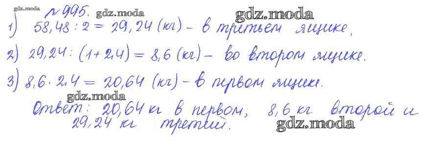 ОТВЕТ на задание № 995 Сборник задач и упражнений по Математике 5 класс Гамбарин
