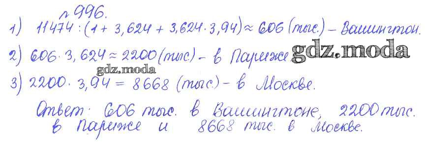 ОТВЕТ на задание № 996 Сборник задач и упражнений по Математике 5 класс Гамбарин