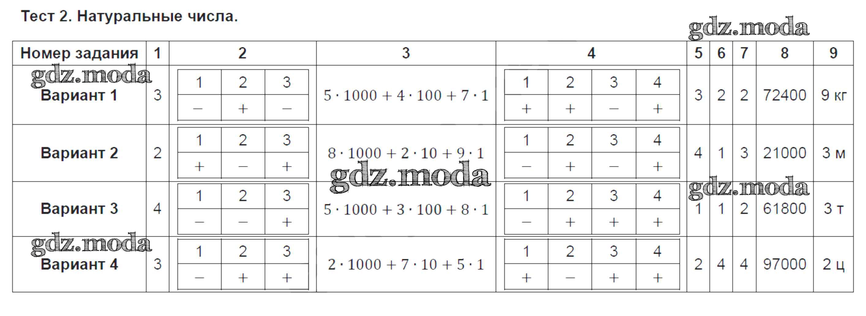 ГДЗ решение к заданию № Тест №2. Натуральные числа Математика 5 класс Тематические тесты Кузнецова Л.В. Просвещение 2018 ФГОС бесплатно на гдз.мода!