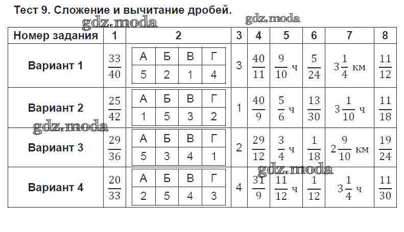 тест / тест №9. сложение и вычитание дробей