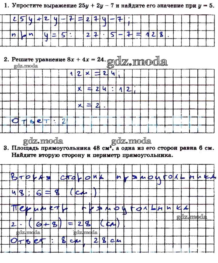 ОТВЕТ на задание № 34 Тетрадь для контрольных работ по Математике 5 класс Зубарева