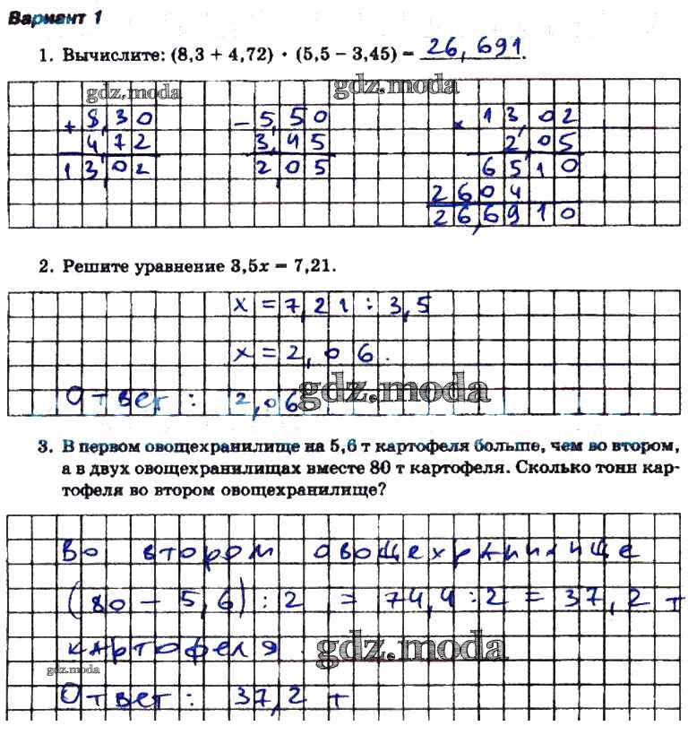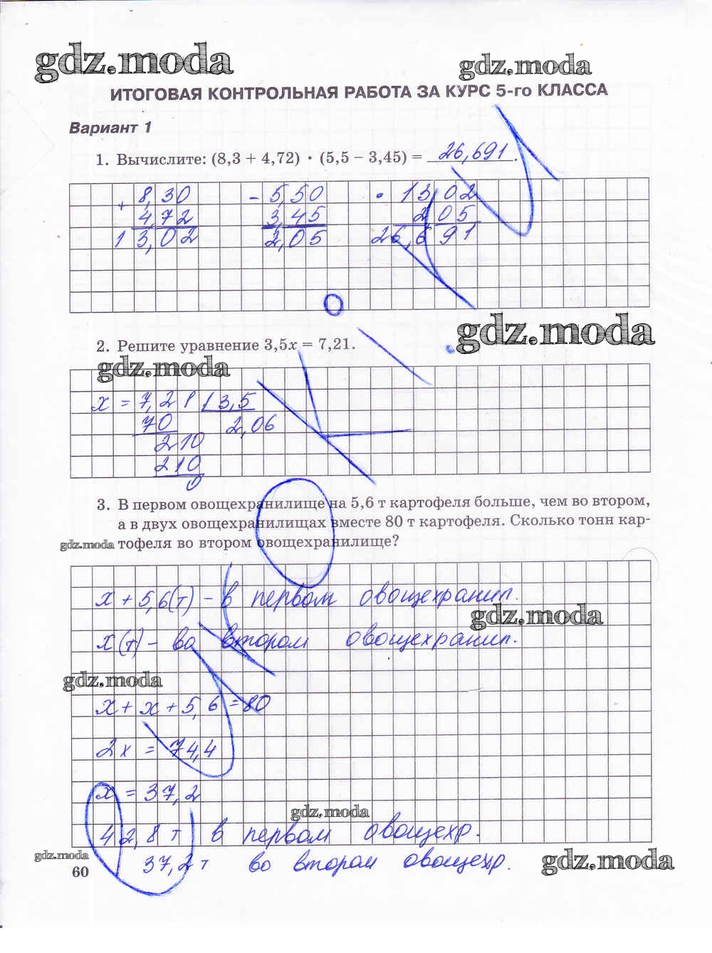 ОТВЕТ на задание № 60 Тетрадь для контрольных работ по Математике 5 класс Зубарева