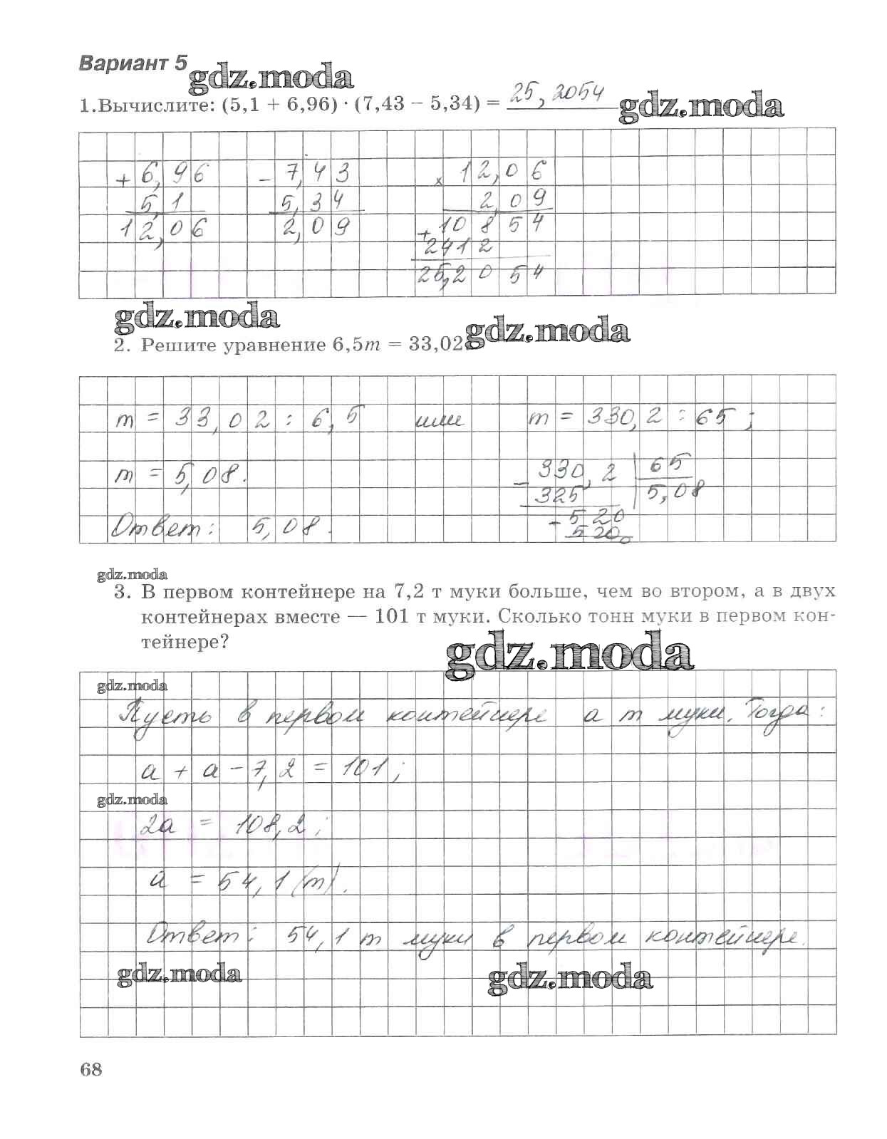 ОТВЕТ на задание № 68 Тетрадь для контрольных работ по Математике 5 класс Зубарева