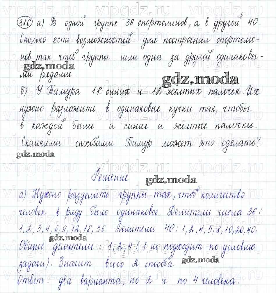 ОТВЕТ на задание № 316 Учебник по Математике 5 класс Бунимович Сферы