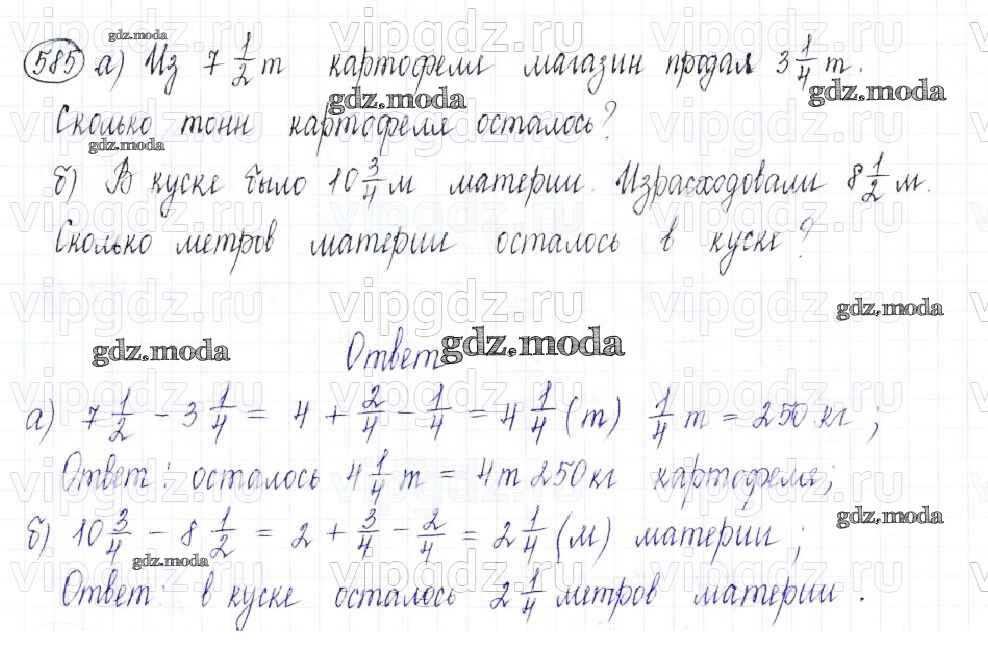 ОТВЕТ на задание № 585 Учебник по Математике 5 класс Бунимович Сферы