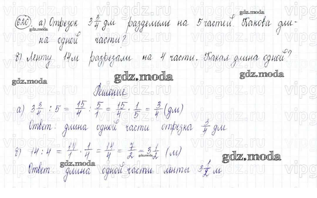 ОТВЕТ на задание № 620 Учебник по Математике 5 класс Бунимович Сферы