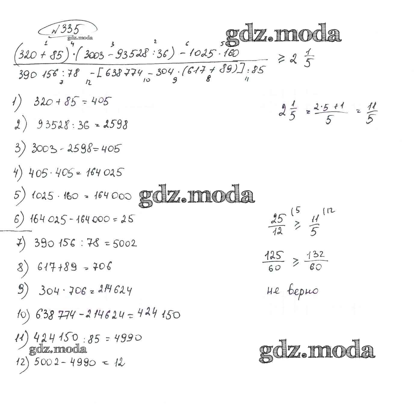 ОТВЕТ на задание № 335 Учебник по Математике 5 класс Петерсон