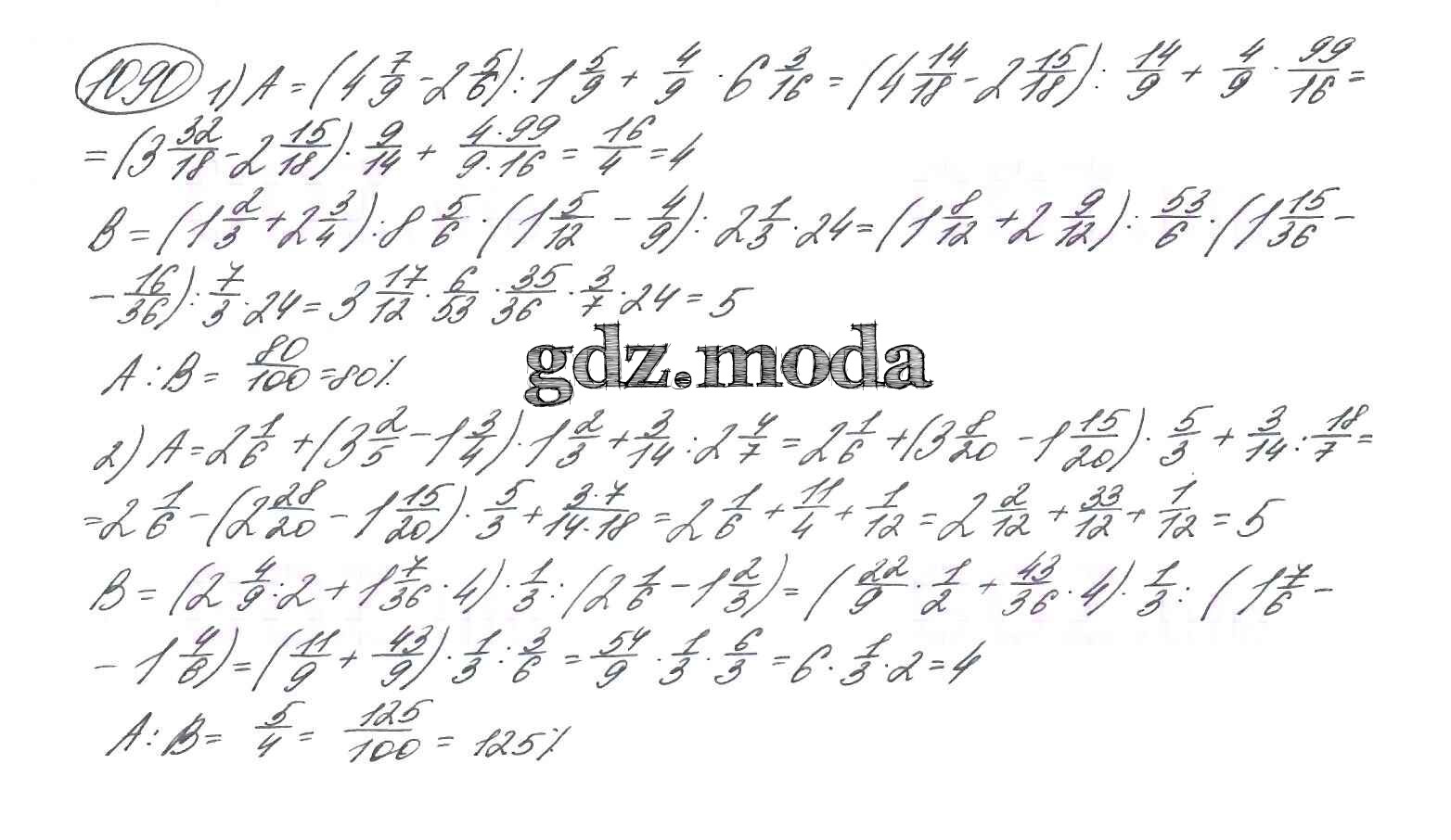 ГДЗ решение к заданию № 1090 Математика 5 класс Петерсон Л.Г. Ювента 2014 Часть 1, Часть 2 ФГОС бесплатно на гдз.мода!