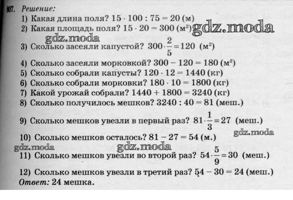 ОТВЕТ на задание № 807 Учебник по Математике 5 класс Петерсон