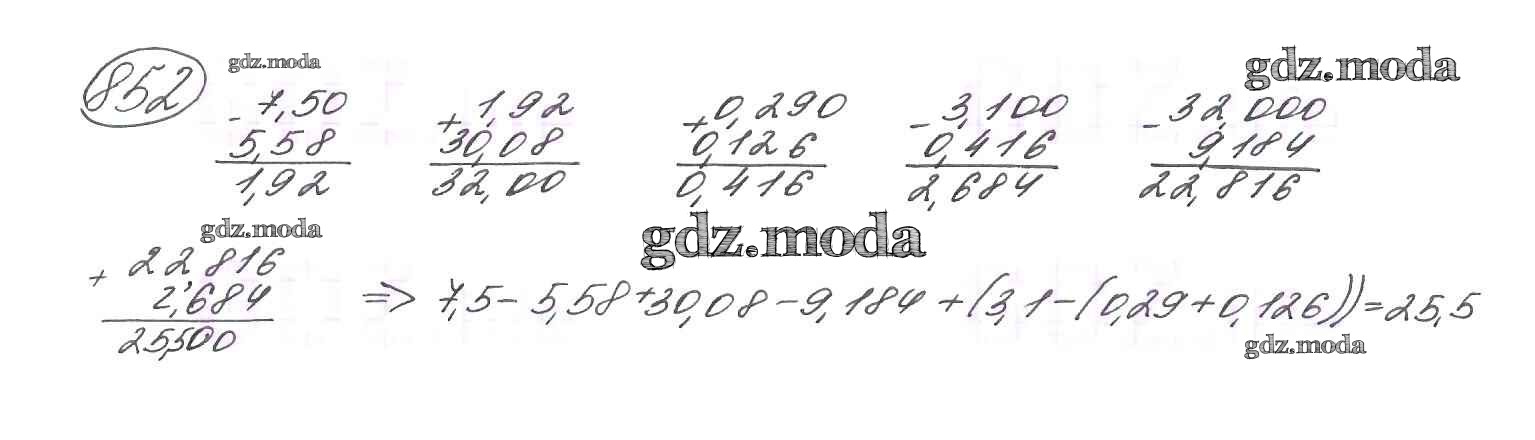 ГДЗ решение к заданию № 852 Математика 5 класс Петерсон Л.Г. Ювента 2014 Часть 1, Часть 2 ФГОС бесплатно на гдз.мода!