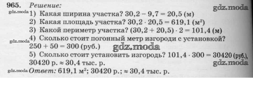 ОТВЕТ на задание № 965 Учебник по Математике 5 класс Петерсон