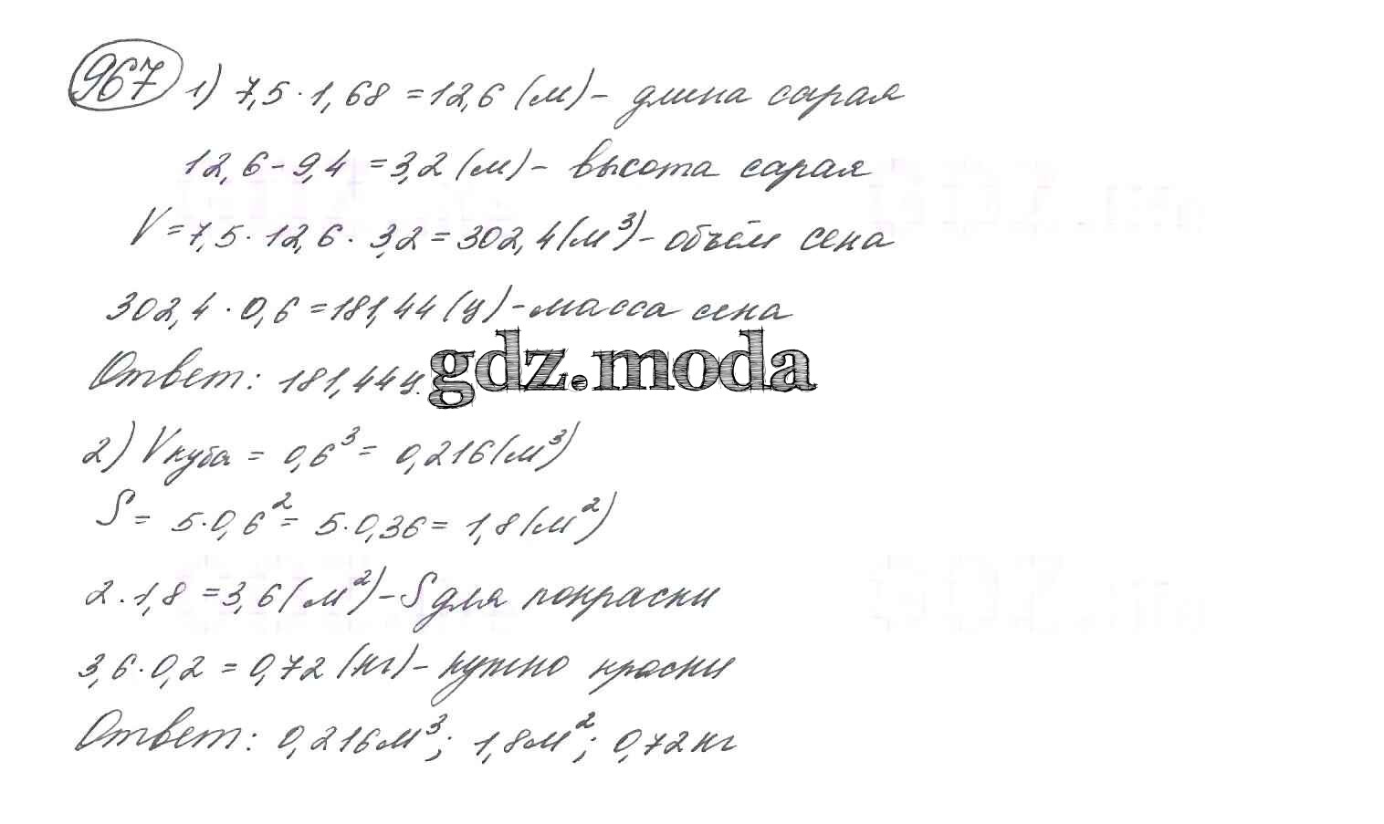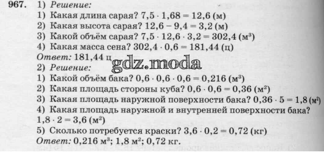 ГДЗ решение к заданию № 967 Математика 5 класс Петерсон Л.Г. Ювента 2014 Часть 1, Часть 2 ФГОС бесплатно на гдз.мода!