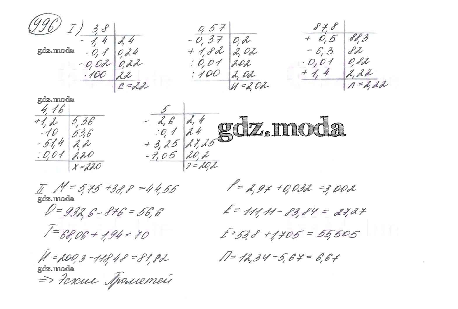 ОТВЕТ на задание № 996 Учебник по Математике 5 класс Петерсон