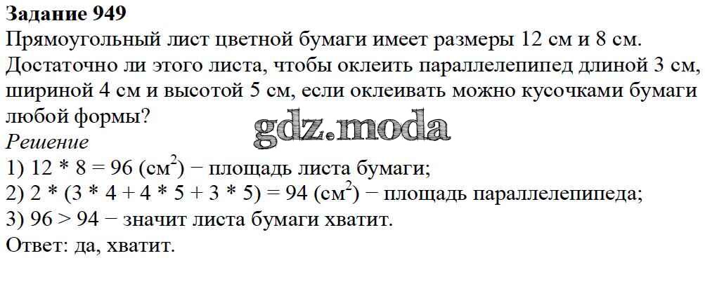 ОТВЕТ на задание № 949 Учебник по Математике 5 класс Дорофеев