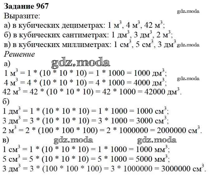 ОТВЕТ на задание № 967 Учебник по Математике 5 класс Дорофеев