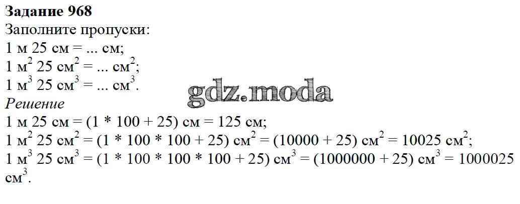 ОТВЕТ на задание № 968 Учебник по Математике 5 класс Дорофеев