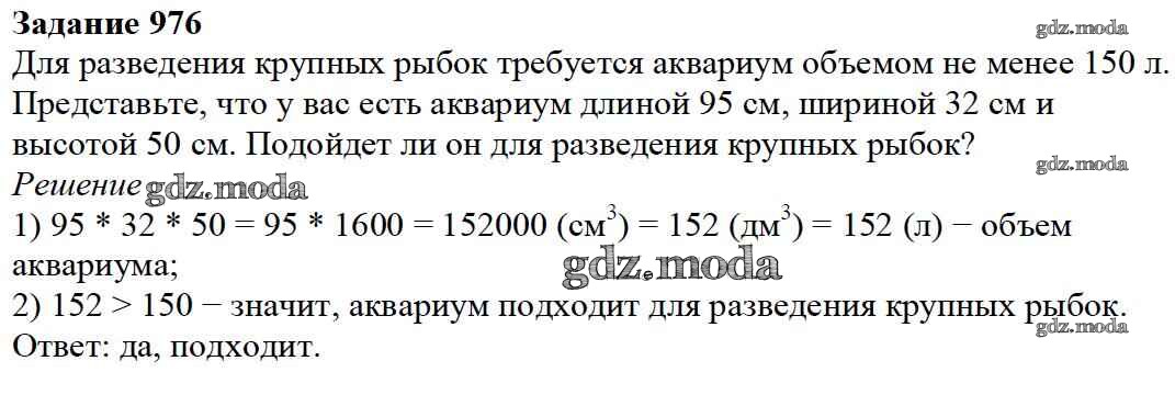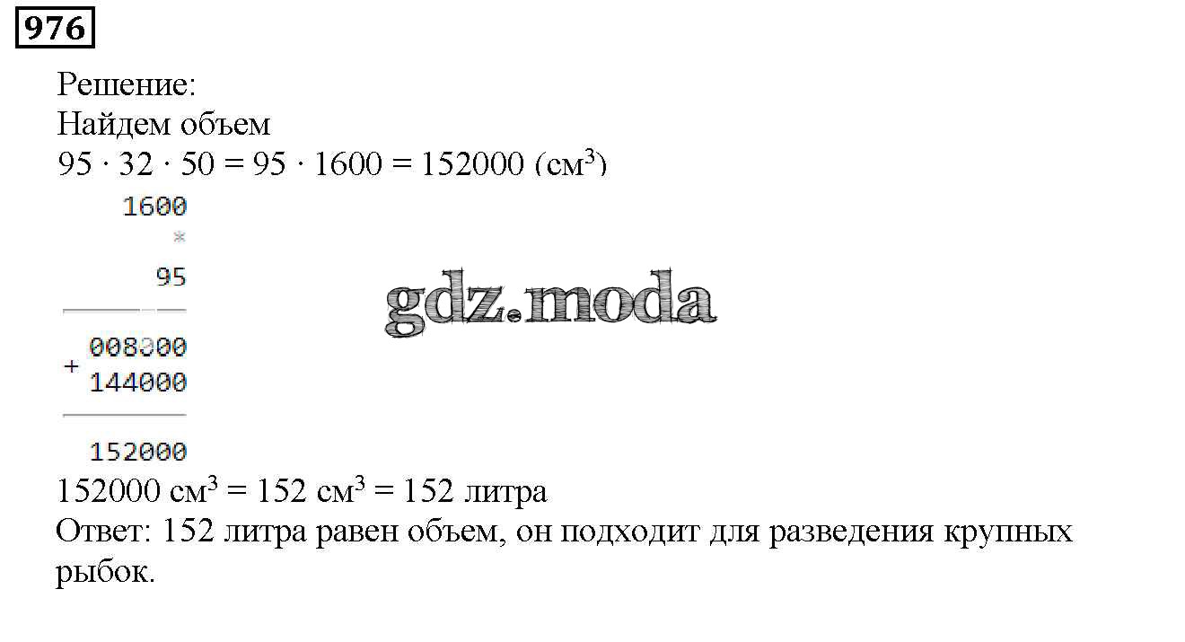 ОТВЕТ на задание № 976 Учебник по Математике 5 класс Дорофеев