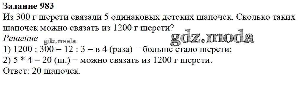 ОТВЕТ на задание № 983 Учебник по Математике 5 класс Дорофеев