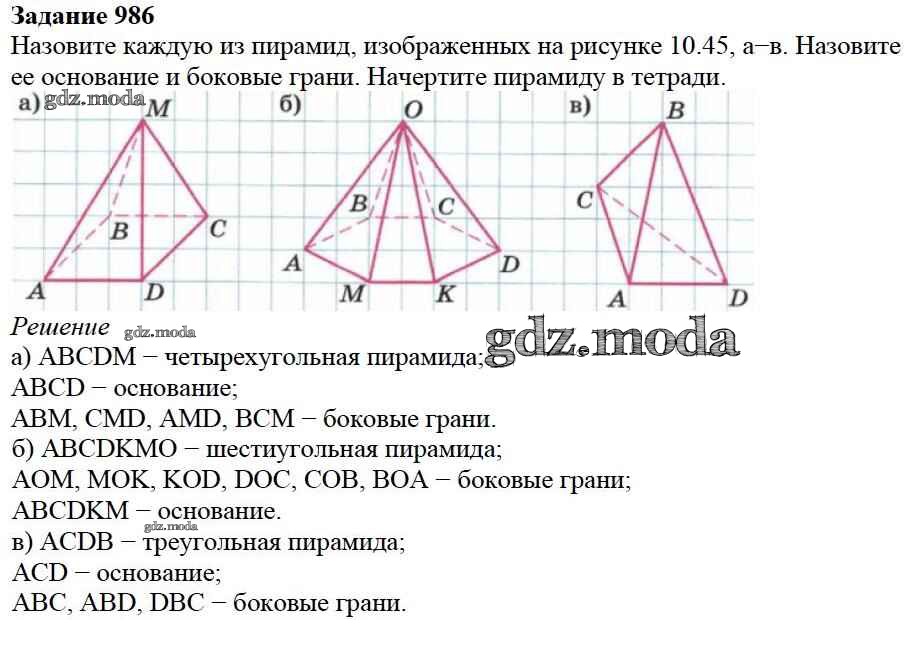 ОТВЕТ на задание № 986 Учебник по Математике 5 класс Дорофеев