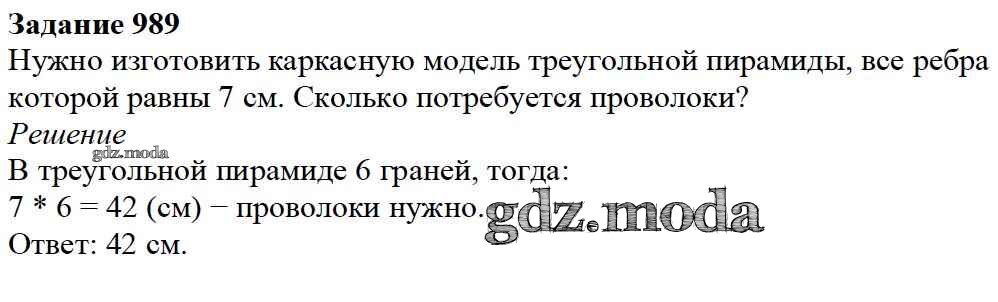 ОТВЕТ на задание № 989 Учебник по Математике 5 класс Дорофеев