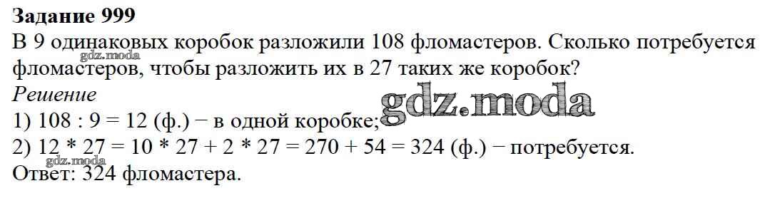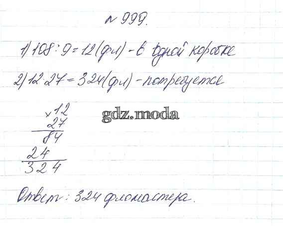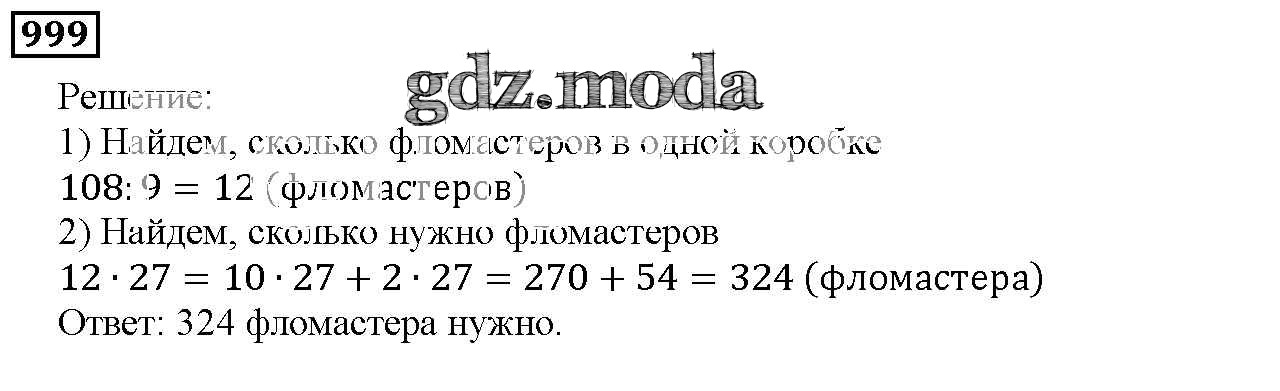 ОТВЕТ на задание № 999 Учебник по Математике 5 класс Дорофеев