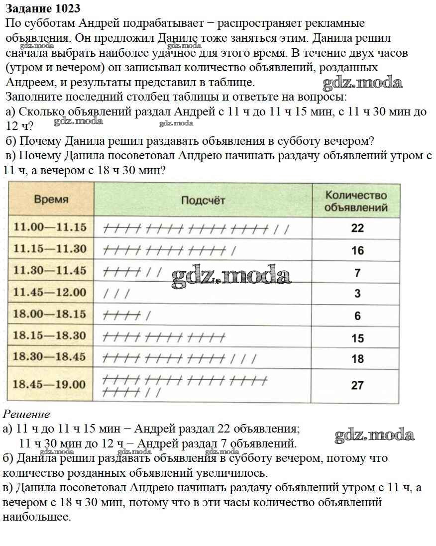 ОТВЕТ на задание № 1023 Учебник по Математике 5 класс Дорофеев