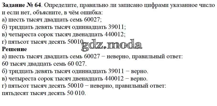 ОТВЕТ на задание № 64 Учебник по Математике 5 класс Дорофеев