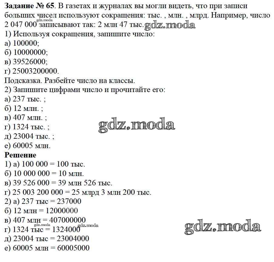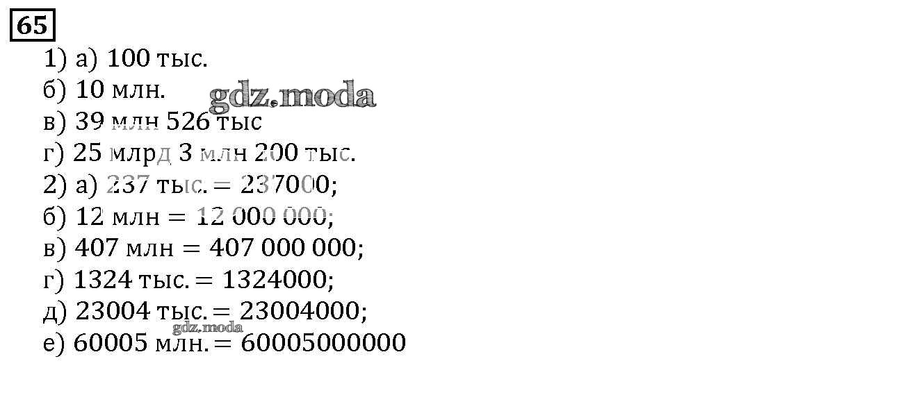 ОТВЕТ на задание № 65 Учебник по Математике 5 класс Дорофеев