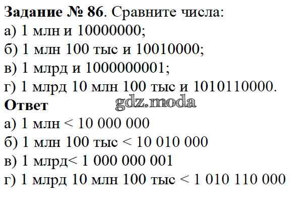 ОТВЕТ на задание № 86 Учебник по Математике 5 класс Дорофеев