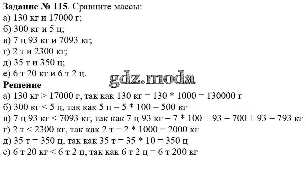 ОТВЕТ на задание № 115 Учебник по Математике 5 класс Дорофеев