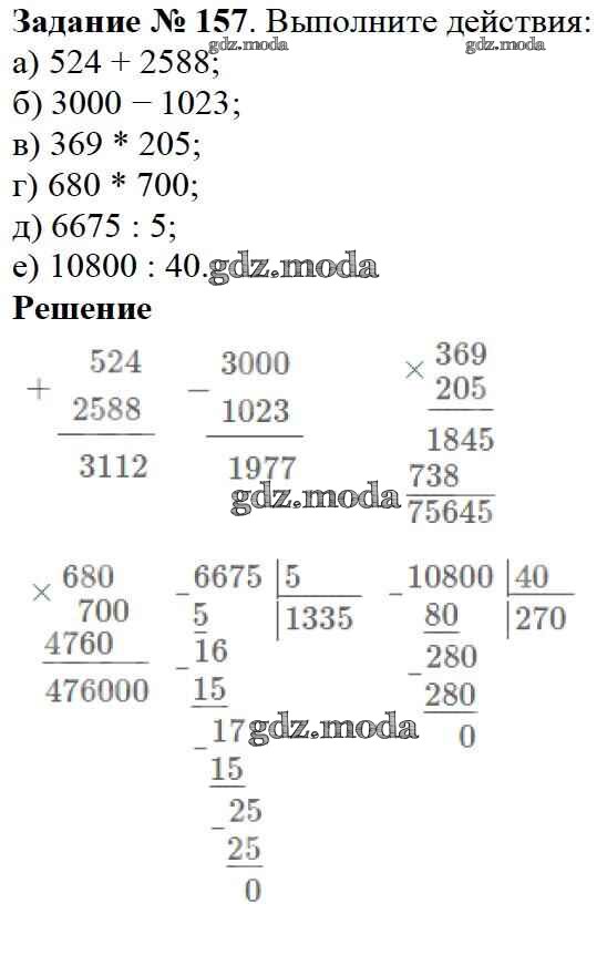 ОТВЕТ на задание № 157 Учебник по Математике 5 класс Дорофеев