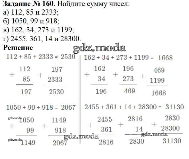 ОТВЕТ на задание № 160 Учебник по Математике 5 класс Дорофеев