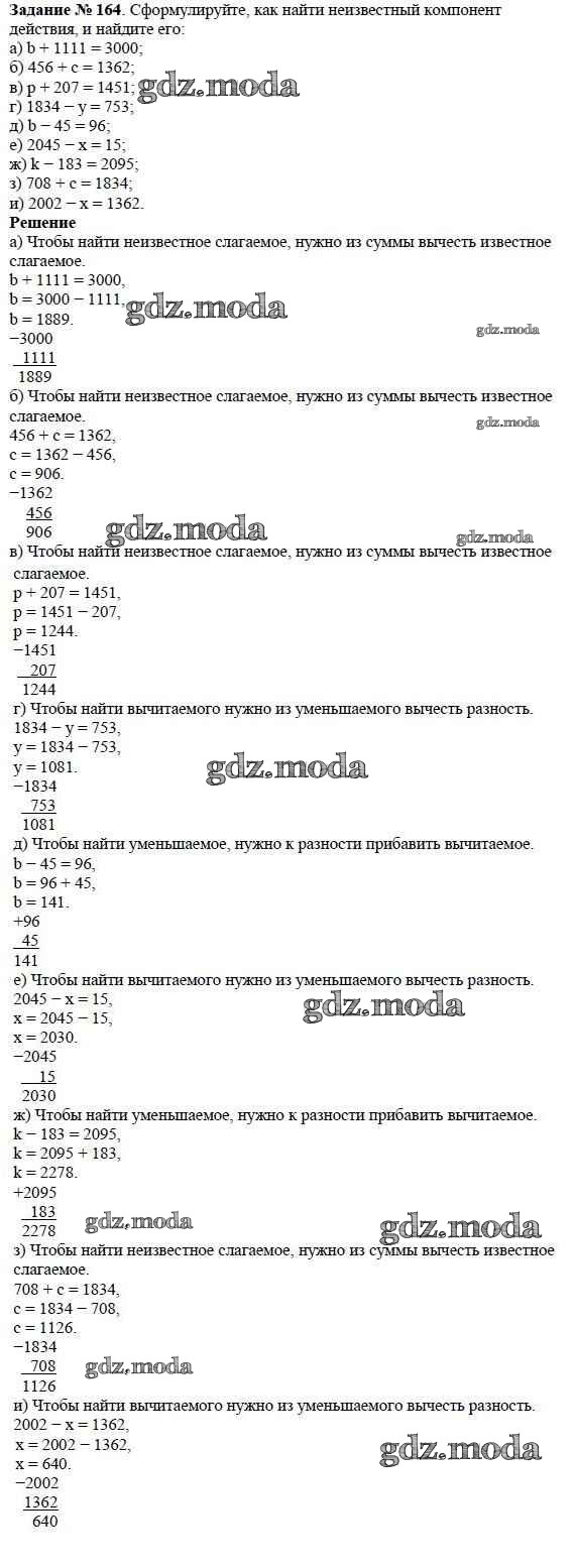 ОТВЕТ на задание № 164 Учебник по Математике 5 класс Дорофеев