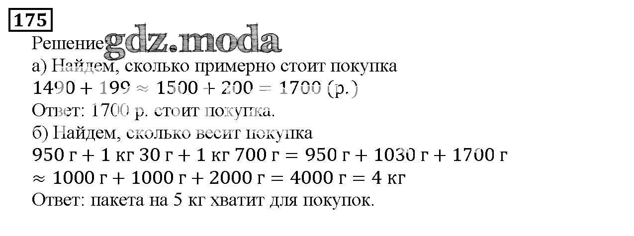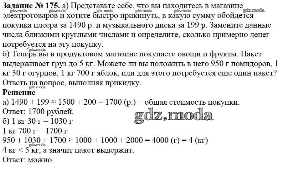 ОТВЕТ на задание № 175 Учебник по Математике 5 класс Дорофеев