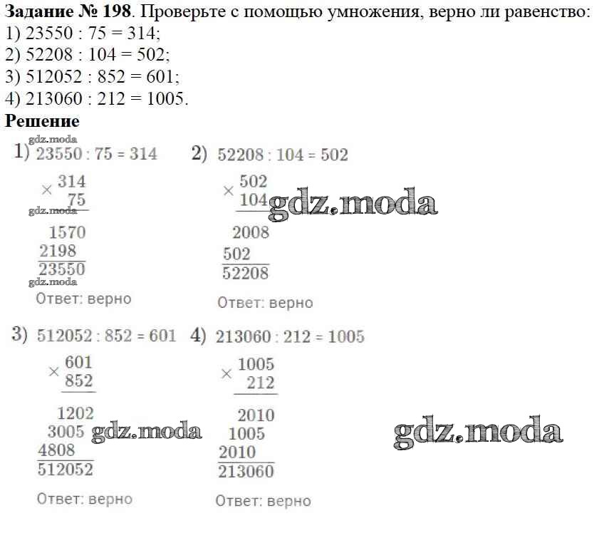 ОТВЕТ на задание № 198 Учебник по Математике 5 класс Дорофеев