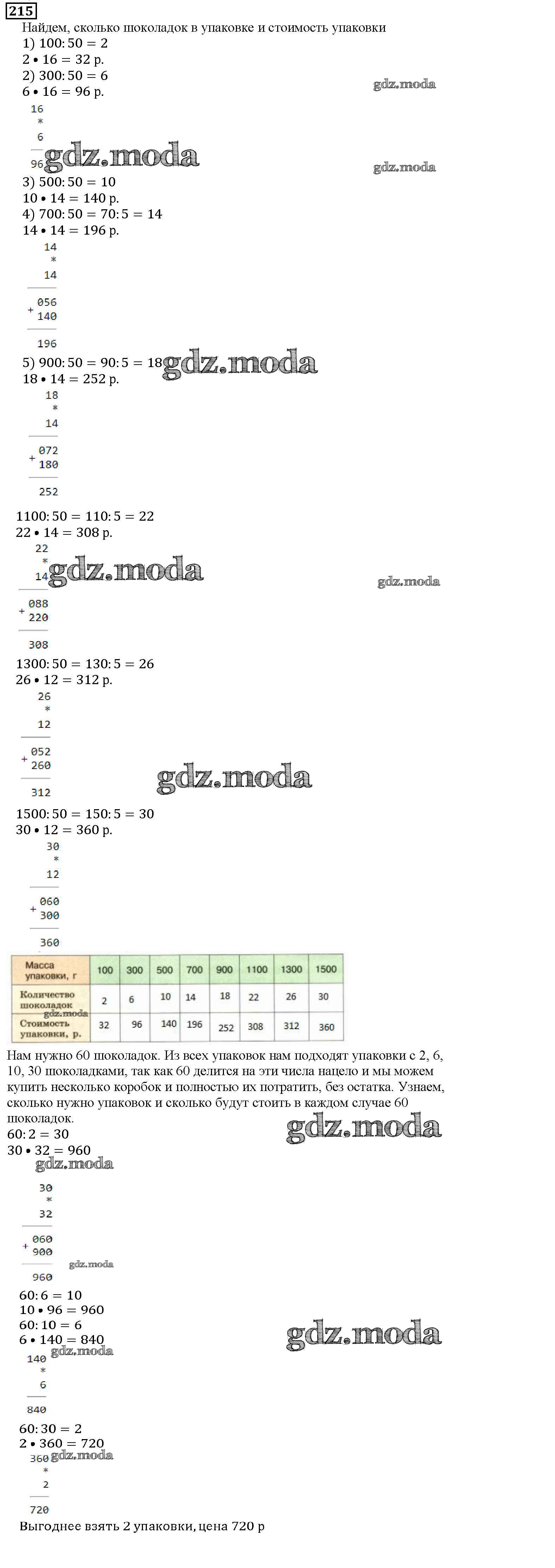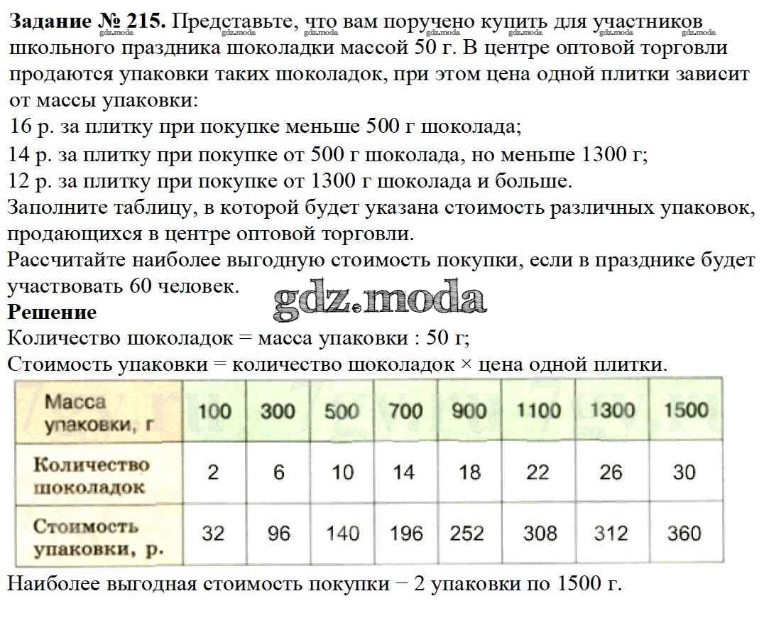 ОТВЕТ на задание № 215 Учебник по Математике 5 класс Дорофеев