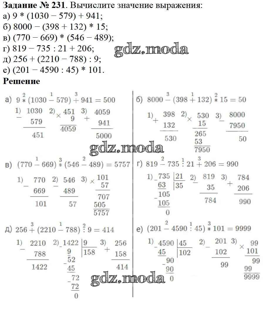 ОТВЕТ на задание № 231 Учебник по Математике 5 класс Дорофеев
