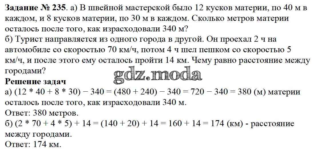 ОТВЕТ на задание № 235 Учебник по Математике 5 класс Дорофеев