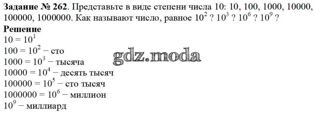 ОТВЕТ на задание № 262 Учебник по Математике 5 класс Дорофеев