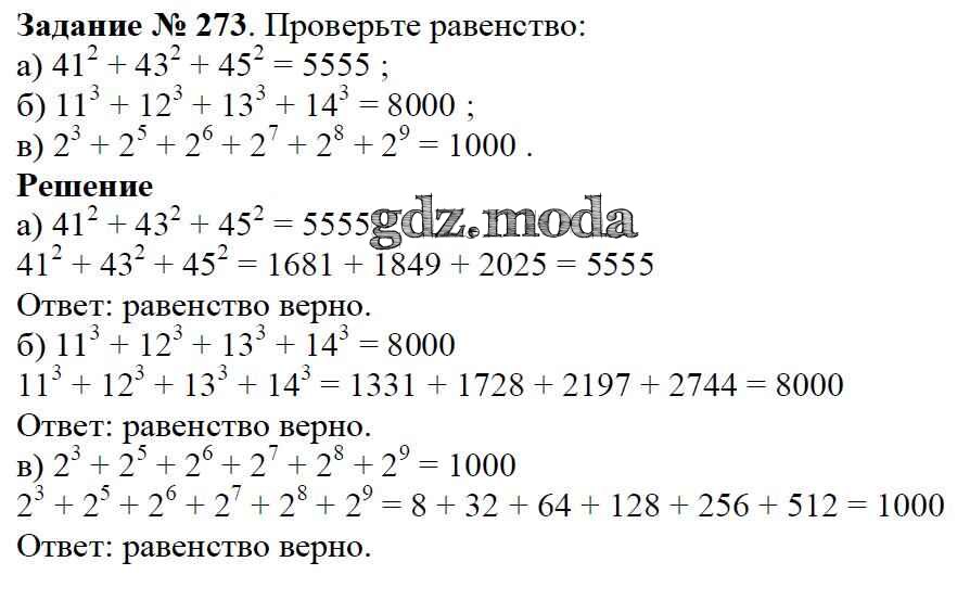 ОТВЕТ на задание № 273 Учебник по Математике 5 класс Дорофеев
