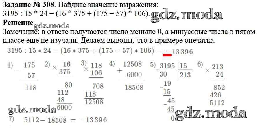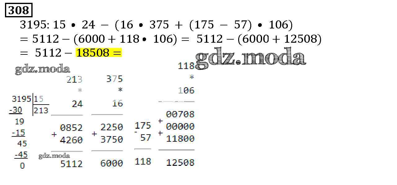 ОТВЕТ на задание № 308 Учебник по Математике 5 класс Дорофеев