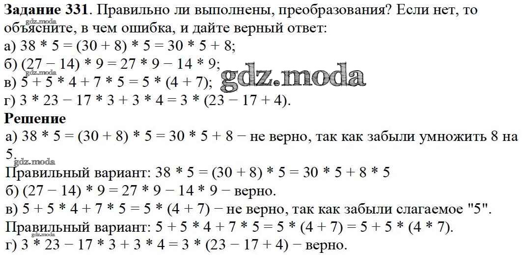 ОТВЕТ на задание № 331 Учебник по Математике 5 класс Дорофеев