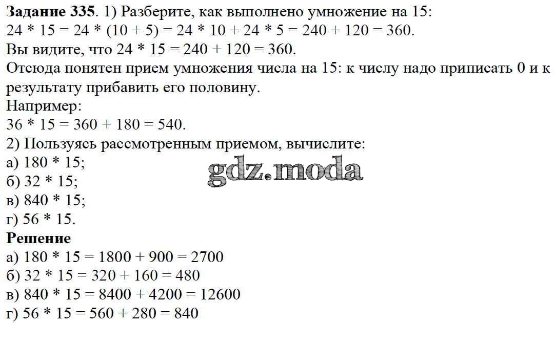 ОТВЕТ на задание № 335 Учебник по Математике 5 класс Дорофеев