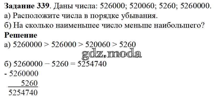 ОТВЕТ на задание № 339 Учебник по Математике 5 класс Дорофеев