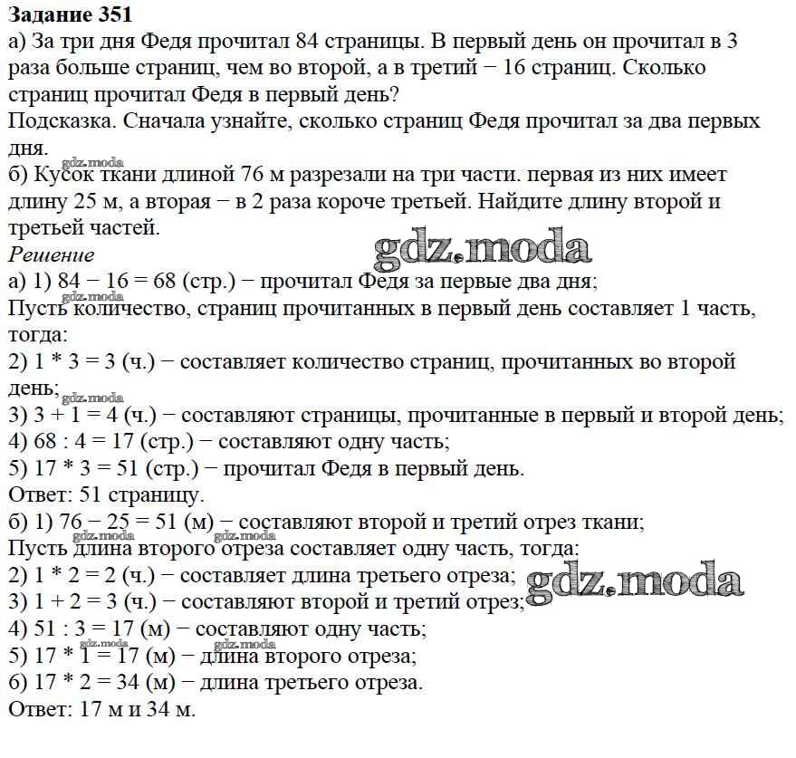 ОТВЕТ на задание № 351 Учебник по Математике 5 класс Дорофеев